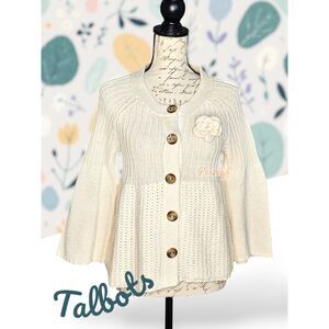 Talbots Knit Bell Sleeves Button Front Cardigan Ivory Small