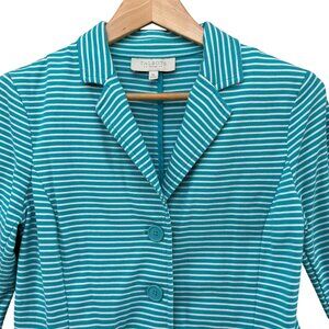 Talbots Knit Blazer Womens Aqua Striped 3 Button Nautical Beach Jacket Sz MP