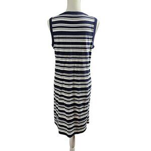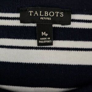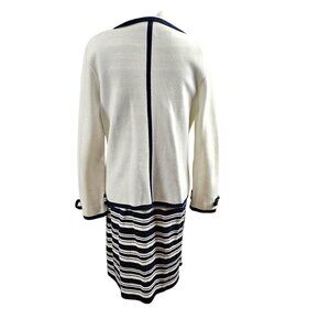 Talbots Knit Double Breast Ivory & Navy Blazer Stripe Cotton Midi Dress Set Size M & MP