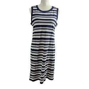 Talbots Knit Double Breast Ivory & Navy Blazer Stripe Cotton Midi Dress Set