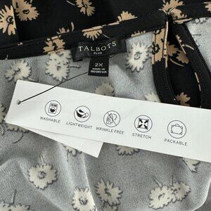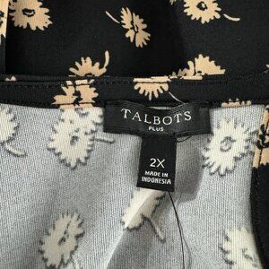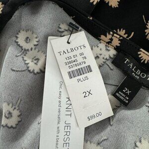 Talbots Knit Jersey Tunic Top 2X Floral Black Tan 3/4 Sleeve Stretch NWT TP-2818
