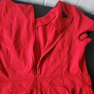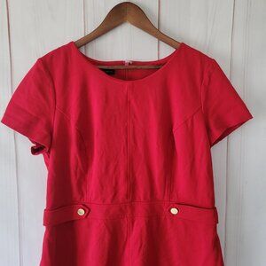 Talbots Knit Short Sleeve Fitted Midi Dress, Women’s Plus Sz 14, Red w/ Gold Accents, Zip-up Closure, Classic Look, Business Casual EUC