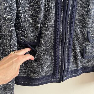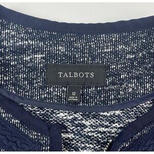 Talbots Knit Soft Full Zip Blazer Jacket 12 Navy Smart Casual Office Old Money