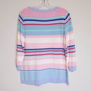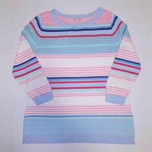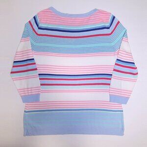 Talbots Knit Sweater Multi Color Pastel Striped 3/4 Sleeve Sweater - Small