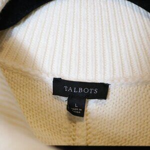 Talbots Knit Sweater Poncho Shrug Shawl Womens Large White Slouchy Neutral Cape