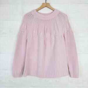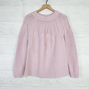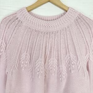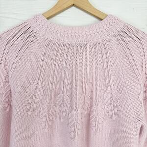 Talbots Knit Sweater Women Medium Embroidered Light Pink Preppy Coquette Crew