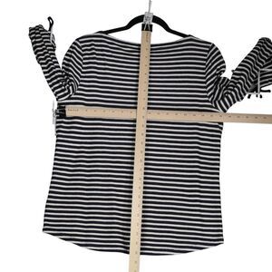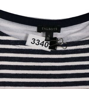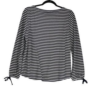 Talbots Knit Top Womens Large Blue White Stripe Nautical Tie Long Sleeves