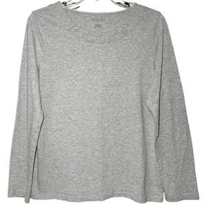 Talbots Knit Top with Pleating at Neckline in Grey Heather Women’s LP