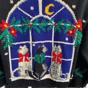 Talbots Knitted by Hand Christmas Holiday Sweater Petite Medium Cats