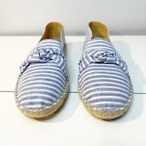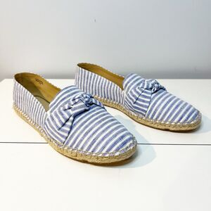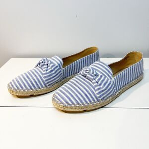 Talbots Knot Linen Espadrilles Flats Blue White Chambray 11 Preppy Coastal NEW