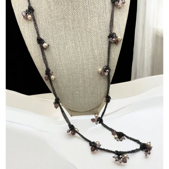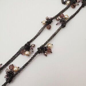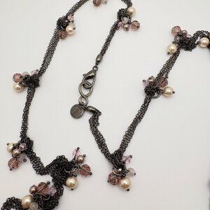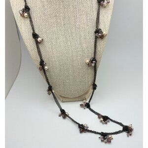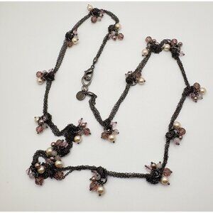 Talbots Knotted Chain Necklace with Pink Bead Accents Charms 30 Inch