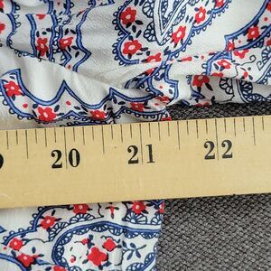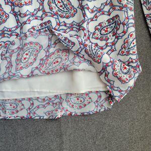 Talbots L Red White Blue Paisley Print Ruffle Blouse