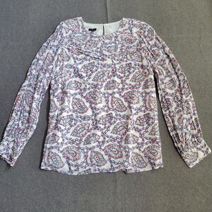 Talbots L Red White Blue Paisley Print Ruffle Long Sleeve Blouse 1533