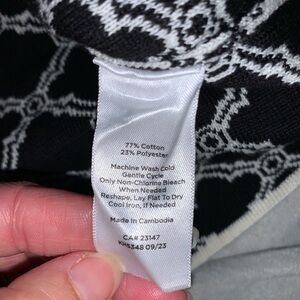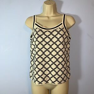 Talbots LATTICE JACQUARD TIPPED black white knit tank top size XS geo print