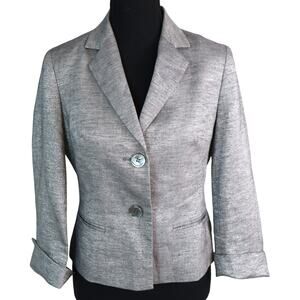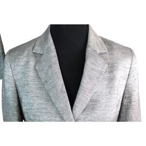Talbots LINEN Gray Metallic Skirt Suit Mini Pleated 3/4 Sleeves Womens 2 4P work