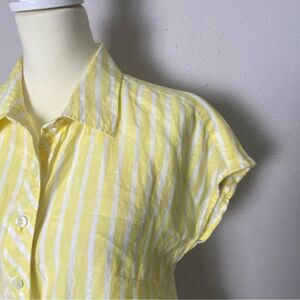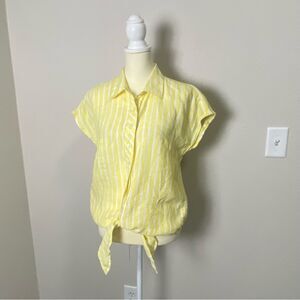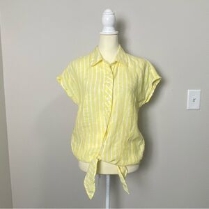 Talbots LINEN TIE HEM BUTTON FRONT TOP - SEASHORE STRIPE Women's Size Small