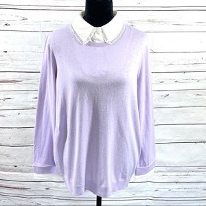 Talbots Lace Collar Pullover Sweater Purple Cotton/ Silk Trim Plus Size 1X