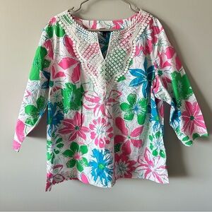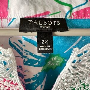 Talbots Lace Embroidered Bib Anguilla Floral Tunic Top Blouse Size 2X Plus