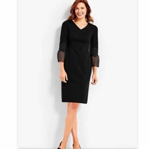 Talbots Lace Flounce Ponte 3/4 Sleeve Sheath Regular Size US 6 Stretch