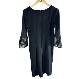 Talbots Women's Lace Flounce Ponte 3/4 Sleeve Sheath Regular Size US 6. Pre owned and in very good condition with no noticeable flaws. Perfect to wear for the office, day to night wear, business casual, career wear, Sunday dress.