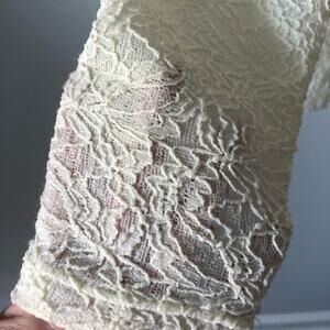 Talbots Lace Long Sleeve Blouse Key Hole Cream M