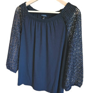 Talbots Lace Ponte Long Sleeve Blouse Black Women's Medium