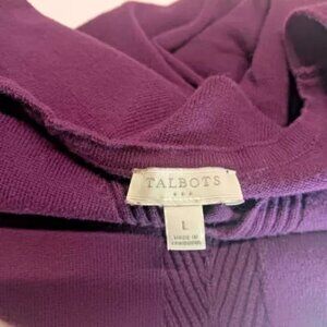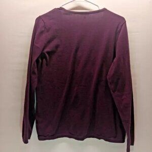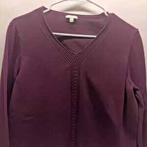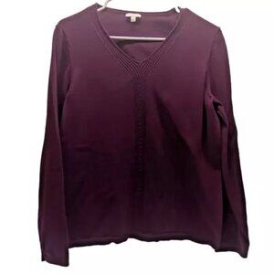 Talbots Ladies Plum V Neck Sweater with Chevron Detail Lightweight Cotton Large