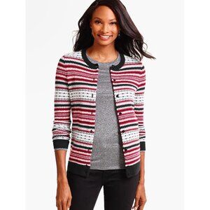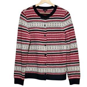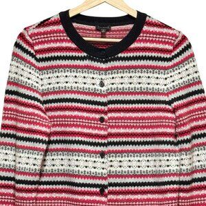 Talbots Lambswool Blend Fair Isle Red Black Cardigan Sweater Womens Size Medium