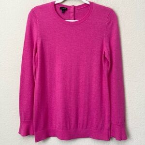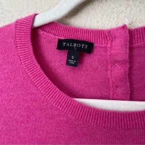 Talbots Lambswool Blend Ruffle Wrist Hot Pink Crew Neck Sweater