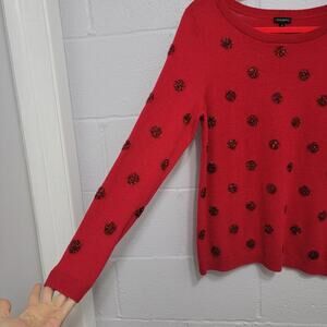 A cute red scoop neck pullover lambswool blend sweater with metallic polka dots by Talbots in size medium.