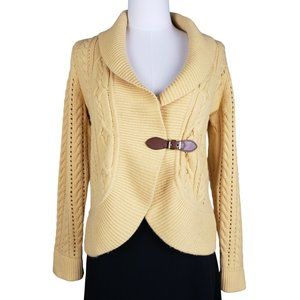 Talbots Lambswool Cable Knit Yellow Cardigan Leather Buckle Sweater MP