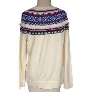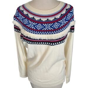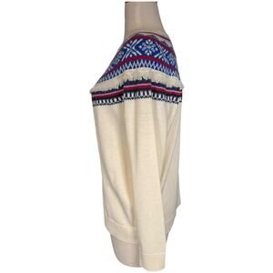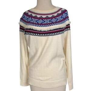 Talbots Lambswool Fair Isle Crewneck Sweater Pullover Ivory Blue Red Size LargeP