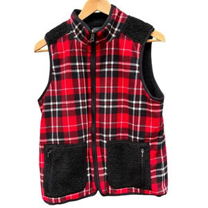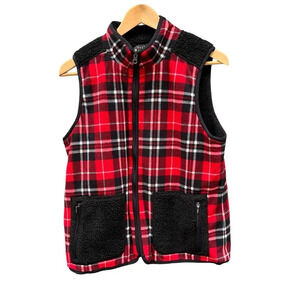 Talbots Landis Plaid Reversible Vest Womens black & red Fall Winter Casual M