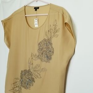 Talbots Large Blouse Gold Beaded With Rhinestones. NWT.