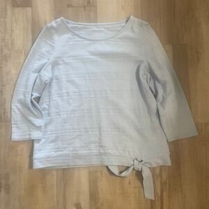Talbots Large Blue Striped Long Sleeve Round Neck Cotton Pullover size Large. A simple silhouette is dressed up with a functional self-tie along the hem. Pair this top with your favorite dress pants for an ultra-polished look.