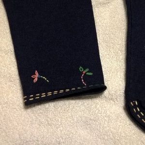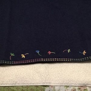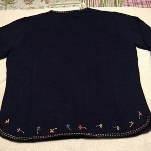 Never worn Talbots navy blue cotton sweater with floral stitching.