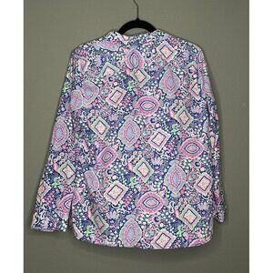 Talbot's Large Petite 100% Cotton Long Sleeve Button Up Paisley Blouse