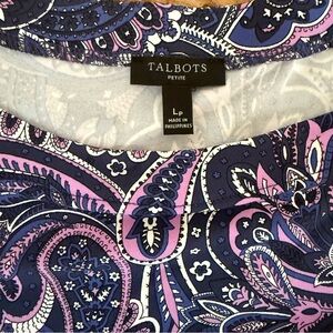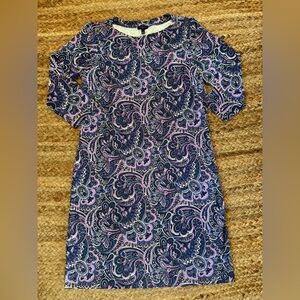 Talbots Large Petite Purple Paisley 3/4 Sleeve Stretchy Dress
