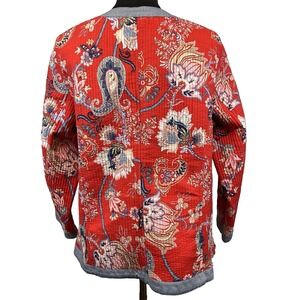 Talbots Large Red Quilted Jacket Size Large Petite Loral Paisley Cottage Boho