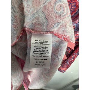 Talbots Large Womens Tunic Top Pink Colorful 3/4 Sleeve Cotton Modal Split VNeck