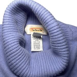 Super cute high quality Talbots turtleneck sweater. 100% pure cashmere in a light lavender color. Super soft and perfect for fall and winter. Damage is pictured. 1 spot mended. 1 small hole on side. 1 small snag on shoulder.
