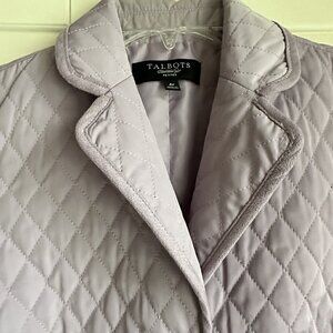 Elevate your casual look with this stylish Talbots Lavender blazer. This long jacket features a button-up closure and is made of 100% Polyester shell and lining that ensures comfort and durability. The jacket's quilted accents add a touch of class and sophistication to your outfit.