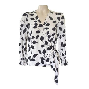 Talbots Leaf Print Wrap Top Petite