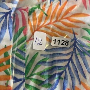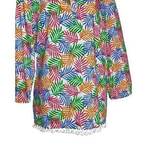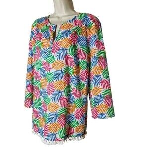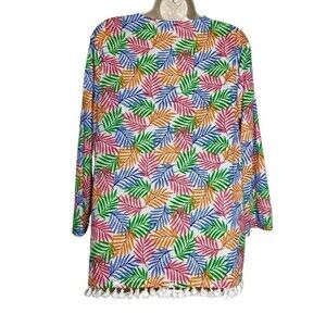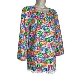 Talbots Leafy Print Popover Tunic top Size XL Long Sleeve Tassels Hem Tropical