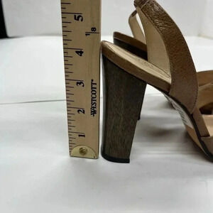 Talbots Leather Beige Strappy Sandals Wood Block Heel size 7.5