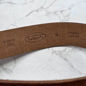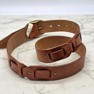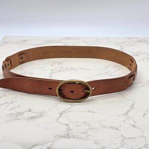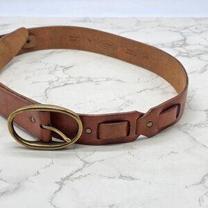 Talbots Leather Belt Women M Brown Cognac Oval Brass Buckle Riveted Side Loops