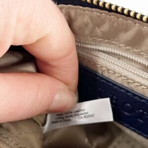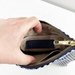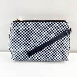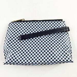 Talbots Leather Gingham Print Zip Top Pouch Wristlet Wallet Blue White