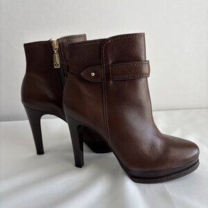 Talbots Leather High Heel Platform Ankle Boot Side Zip Size US 7B Brazil