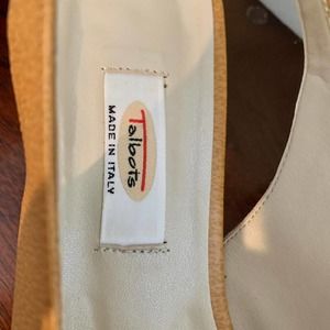 Talbots Square Toe with Buckle decoration and square heel slingback sandals. Leather uppers and soles. Made in Italy. 7 1/2 M. The sandals are in gppd condition. Very little wear to the bottoms. "Insole" portion looks almost brand new. These sandals retailed between $129 and $149 new.