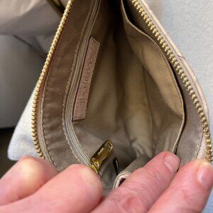 Talbots Leather Wristlet Clutch Croco Embossed Color Sand-Blush Zip Top Close